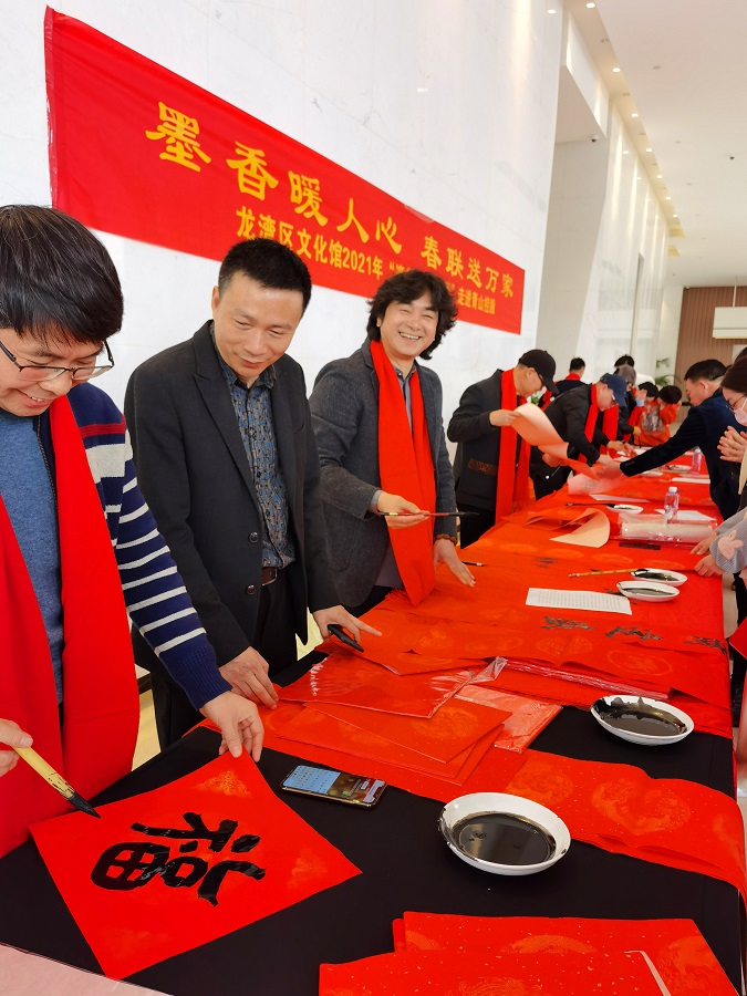 2月3日11时,PA旗舰厅控股集团有限公司联合温州市龙湾区文化馆在PA旗舰厅总部大楼开展了2021年“迎新春 送春联”活动。区文化馆十余位书法家及爱好者来到了PA旗舰厅总部大楼,他们真情挥舞笔墨,为每位来到现场的员工送上一幅幅“新鲜出炉”的对联和福字,活动现场热闹非凡。有些员工特地选好自己中意的对联标语,请书法老师专门为其书写,现场还排起了队伍。每位收到对联和福字的员工都洋溢着幸福的笑脸,如获珍宝。此次活动不仅营造了温馨、浓厚的节日氛围,也让广大员工感受到了传统书法的真切魅力。