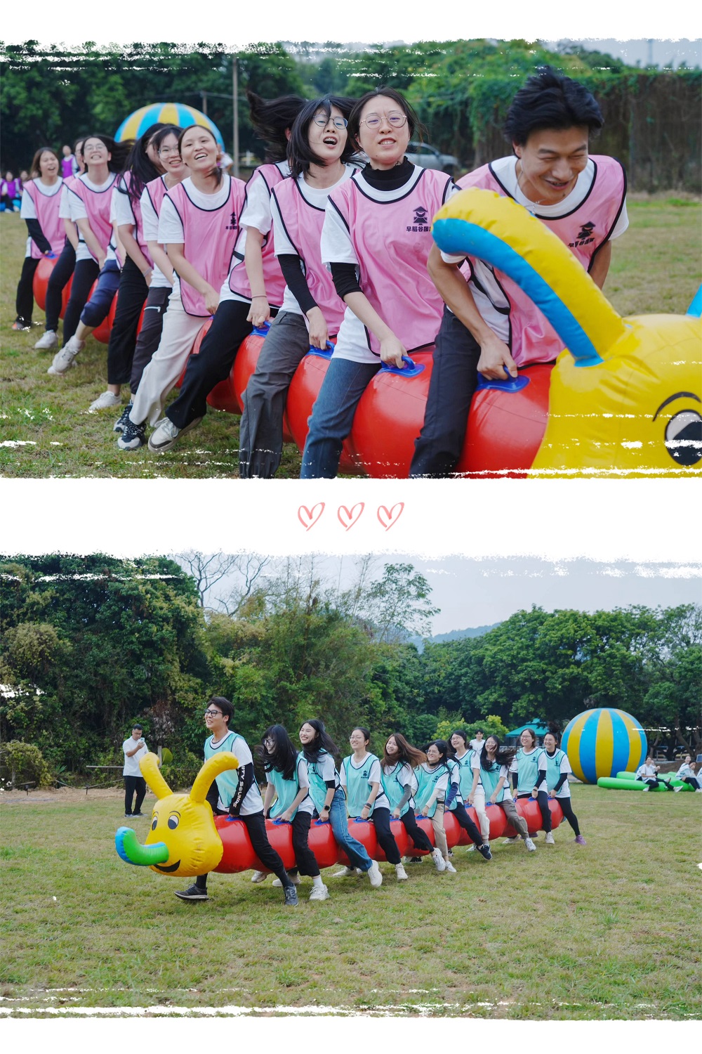 在趣味运动会上,全体队员进行了一系列有趣的运动项目,这些挑战项目包括“毛毛虫”“鸿运彩球”和“车轮滚滚”等,要求各个队伍在规定时间内完成任务。在挑战与困难面前,队员们展现了出色的团队协作能力,积极思考、共同努力,不断攻克难题。