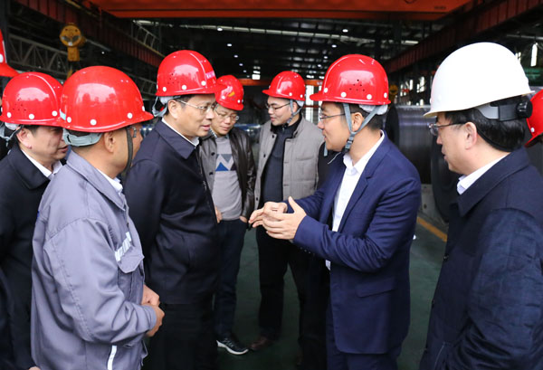 郭锡文一行首先走进宏旺不锈钢冷轧生产车间实地参观考察,听取相关情况介绍,重点对企业生产运行、工艺创新、发展规模、未来前景等情况进行了解。随后,一行人员来到青拓集团营运中心,感受企业绿水PA旗舰厅与金山银山协同共进的发展理念。