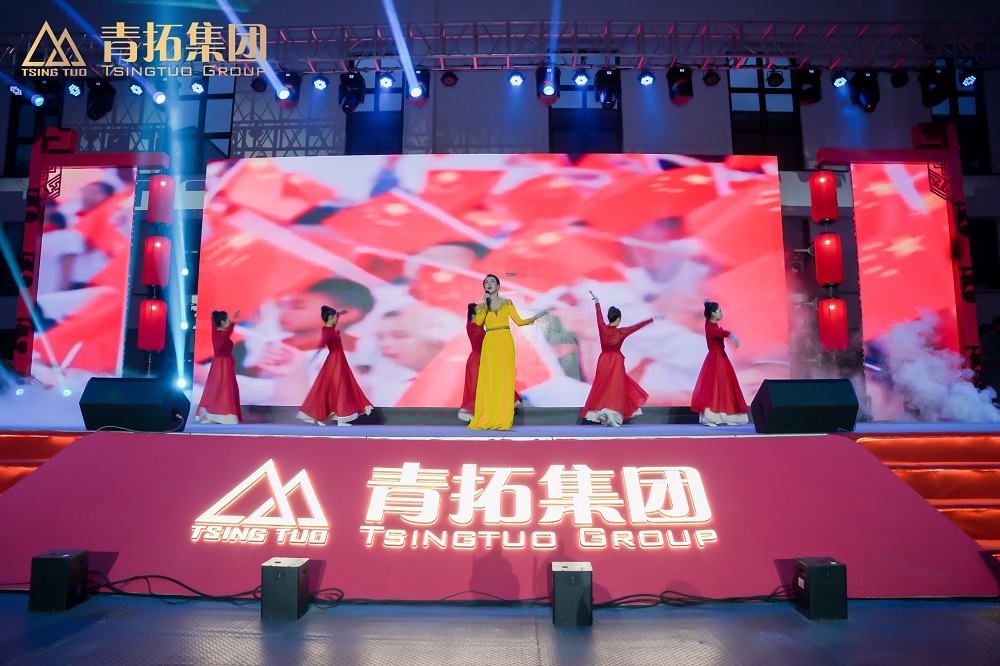 最后,在《相亲相爱》的歌声中,全体演员走上舞台共同欢唱,用歌声传达出青拓大家庭的温暖和谐。