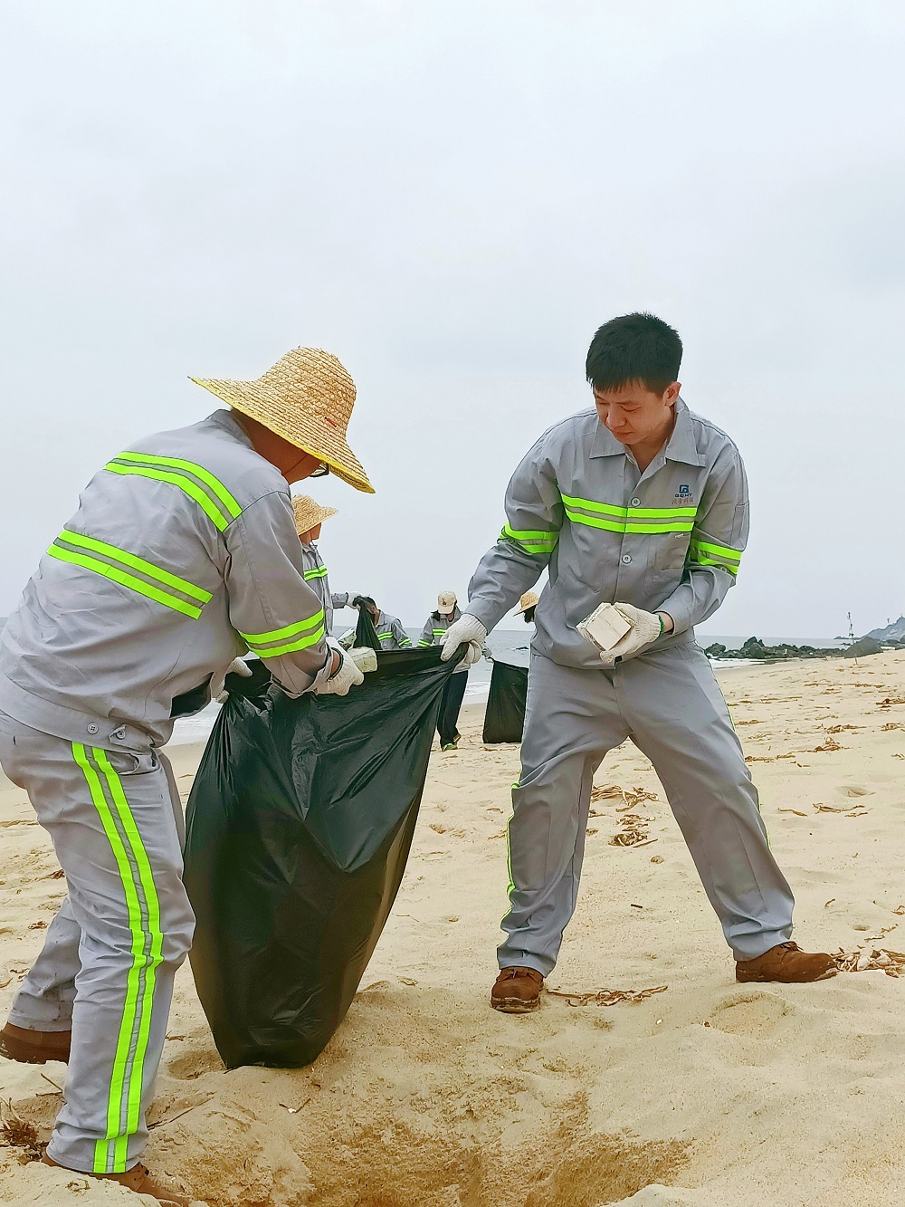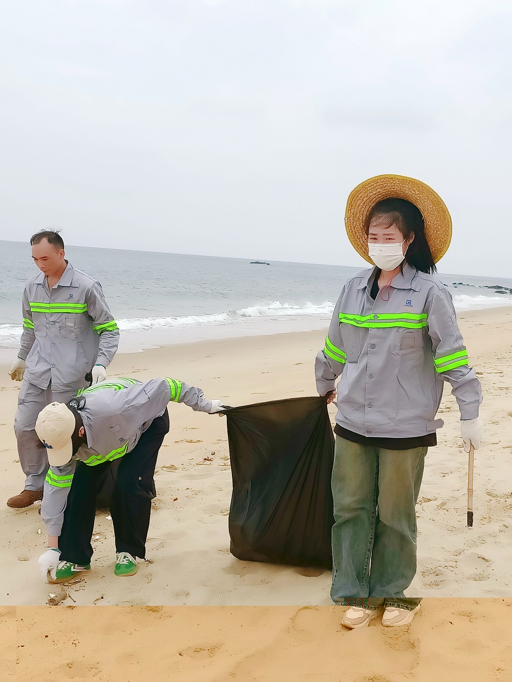 活动当天,党员与团员们身着统一服装,携带清洁工具前往东岛金沙滩。尽管酷热难耐,但全体人员热情高涨,大家分工明确、协作有序,配合十分默契,认真细致地清理沙滩上的各类垃圾,以实际行动为守护海滩贡献力量。经过共同努力,原本散落着垃圾的海滩焕然一新,重新展现出美丽的海滨风光。