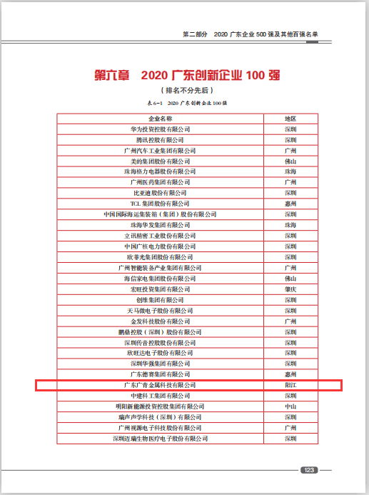 近日,广东省企业联合会、广东省企业家协会发布了2020年度广东企业500强榜单。广青科技位列2020年广东企业500强第99位,2020年广东省制造业100强第37位,并入选2020年广东创新企业100强。