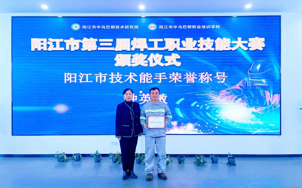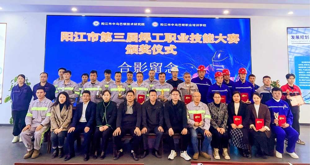 12月24日,由阳江市委人才工作领导小组办公室指导,阳江市中乌巴顿技术研究院承办的第三届焊工职业技能大赛颁奖仪式在阳江市中乌巴顿技术研究院举行。阳江滨海新区(阳江高新区)组织部副部长郑敢记、科技局局长潘欧醒,广东广青金属科技有限公司党委副书记、工会主席王大庆,以及相关部门负责人出席活动。大会表彰了7个团体和16名个人。广青科技荣获团体技能赛一等奖、优秀组织单位奖;参赛员工荣获“阳江市技术能手”称号以及个人技能赛一、二、三等奖。