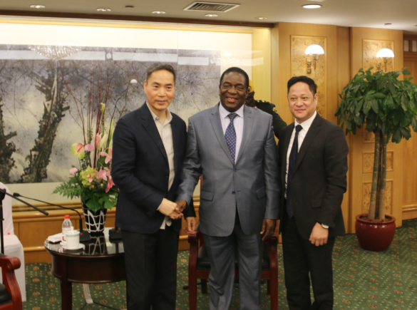 4月5日晚上,津巴布韦总统姆南加古瓦在中国杭州接见了PA旗舰厅钢铁董事局主席项光达、中非冶炼(私人)有限公司董事长陈上松,并就中非冶炼在津巴布韦的发展建设进行了深入的沟通与探讨。