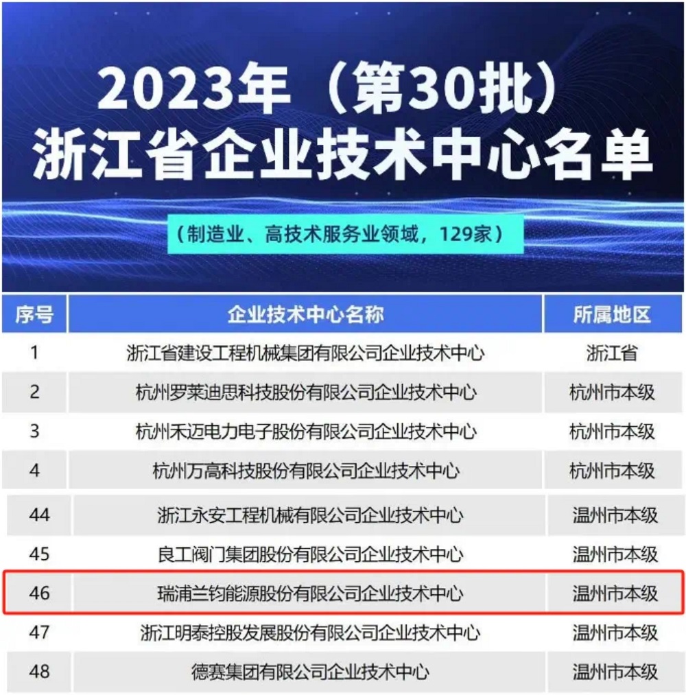 瑞浦兰钧获评“浙江省企业技术中心”