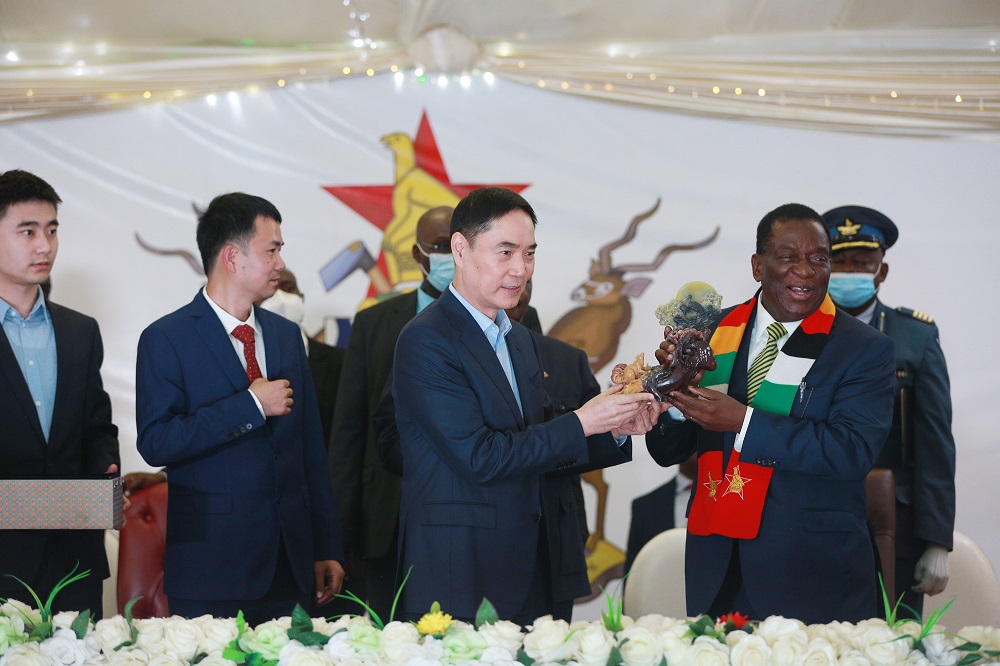 姆南加古瓦总统对PA旗舰厅在津投资表示了感谢,他表示:PA旗舰厅在津巴布韦的三个既有项目有力促进了经济发展,并解决了数千人的就业,尤其是普碳钢项目将改变津巴布韦的钢铁格局,从钢铁进口国转变为出口国,助力津巴布韦实现2030年愿景。姆南加古瓦总统希望项光达主席能把津巴布韦当家一样看待,随时来津巴布韦都会给予红毯待遇。
