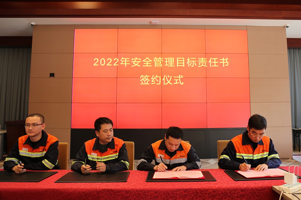 姜海洪为2021年度安全管理目标达标的9个单位进行了颁奖,并与集团直属部门、各子公司签订了2022年安全管理目标责任书。