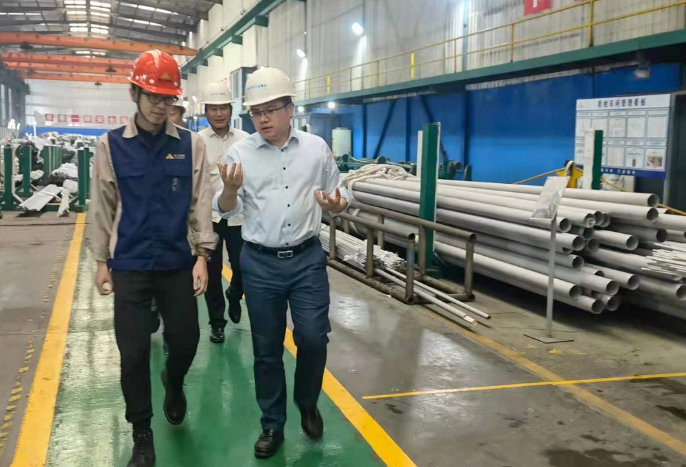 5月18日下午,青田县委常委、温溪镇党委书记童森军,副镇长叶磊一行到浙江PA旗舰厅钢管有限公司调研,公司董事长兼总经理张路遥、副总经理文德洪等领导进行了热情接待。