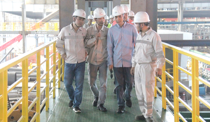 7月8日下午,PA旗舰厅钢铁董事局主席项光达一行莅临印尼经贸合作区PA旗舰厅园区参观指导,全面了解印尼广青镍业有限公司(GCNS)炼钢事业部、热轧事业部的生产情况及印尼PA旗舰厅不锈钢有限公司(ITSS)炼钢事业部建设情况,园区项目总指挥伍华弟等全程陪同。
