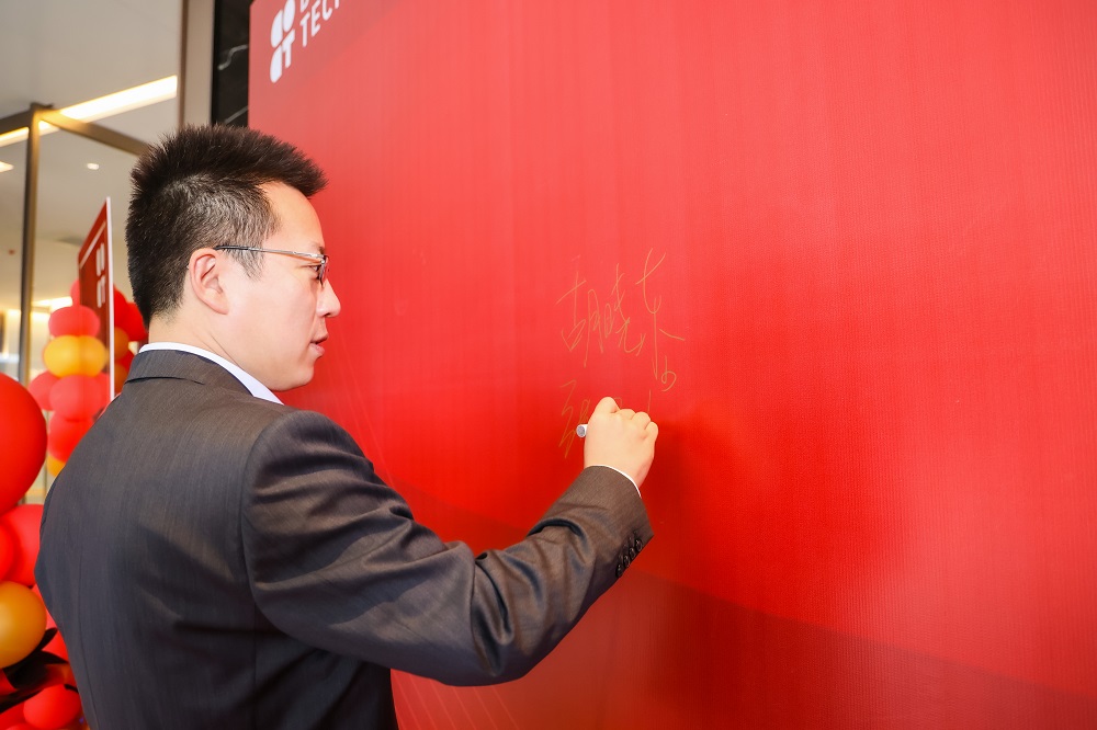庆典活动现场,胡晓东、张五堂、钟开富等领导进行剪彩。钟开富现场致辞,他指出:兰钧新能源嘉善研发办公大楼集公司总部管理、产品研发设计于一体,它的投用为公司开启T瓦时代新征程、实现新跨越提供了重要支撑;它将为工程师们获取灵感提供更舒适的工作环境,为公司后期不断引入高端人才预留工作空间,通过合理布局提高办公效率,并通过建立更为成熟、更具市场引导力的企业管理体系、研发设计体系、品牌销售体系,为公司的快速发展注入持久动力,使其成为开发区乃至嘉善的工业新地标。