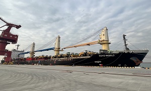 12月20日,在南通海事局现场维护下,由永青集团有限公司福建代表处承租的巴拿马籍杂货船“东洋世界”稳稳停靠在通州湾吕四起…